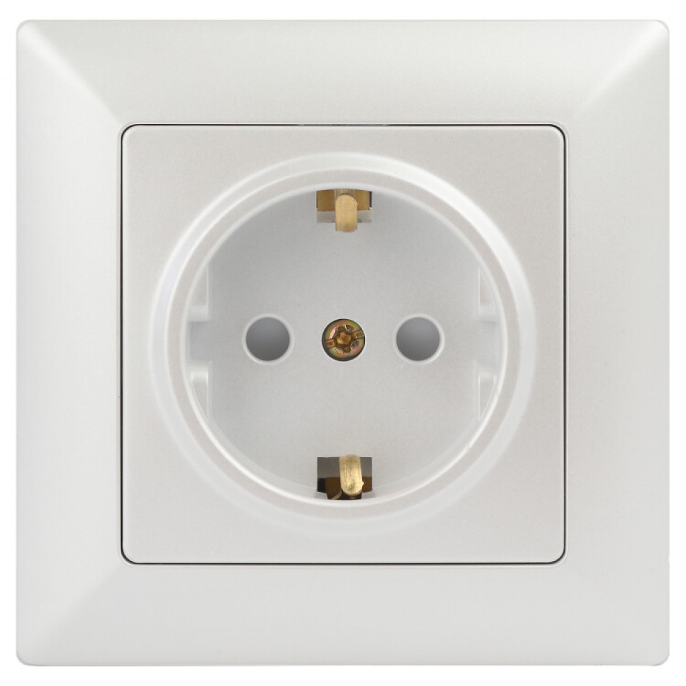 Розетка Plano 1Э-206-01 с заземлением 2P+E Schuko со шторками, 16А-250В, IP20, СУ, без лапок, белый Б0053955 →