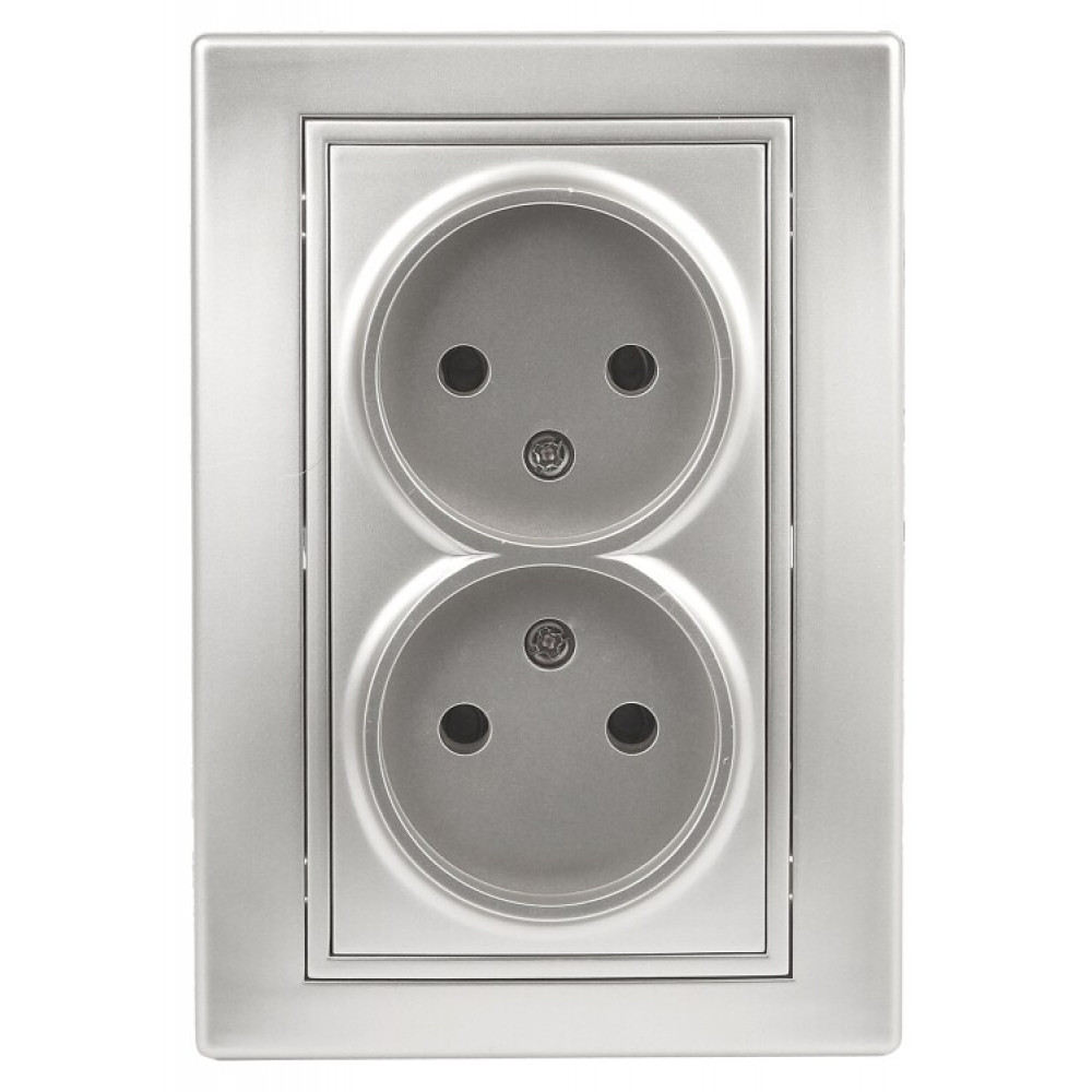 Розетка Plano 1-204-03 без заземления двойная 2х2P, 16А-250В, IP20, СУ, алюминий Б0053907, Розетка скрытого монтажа