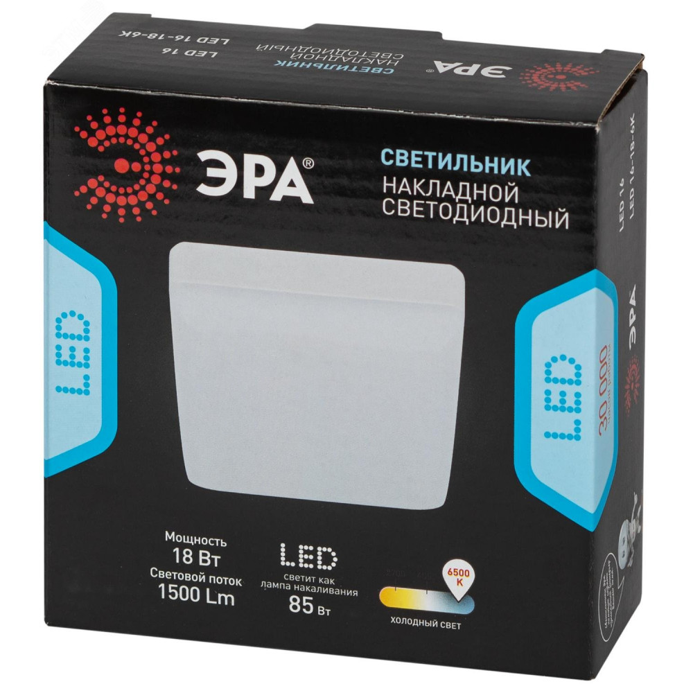 Описание Светильник светодиодный LED 16-18-6K накладной квадратный 18Вт 6500К Б0054339