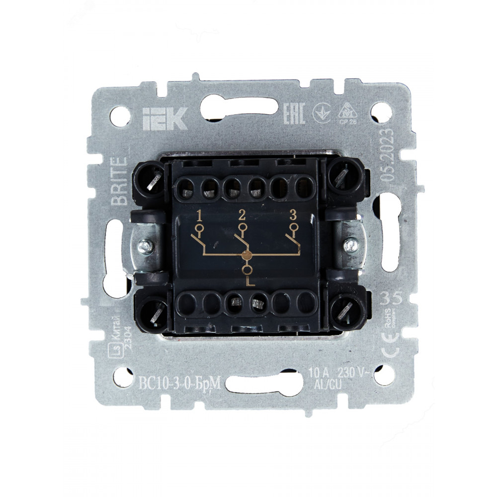 Описание Выключатель 3-кл. СП BRITE ВС10-3-0-БрМ 10А маренго BR-V30-0-10-K35
