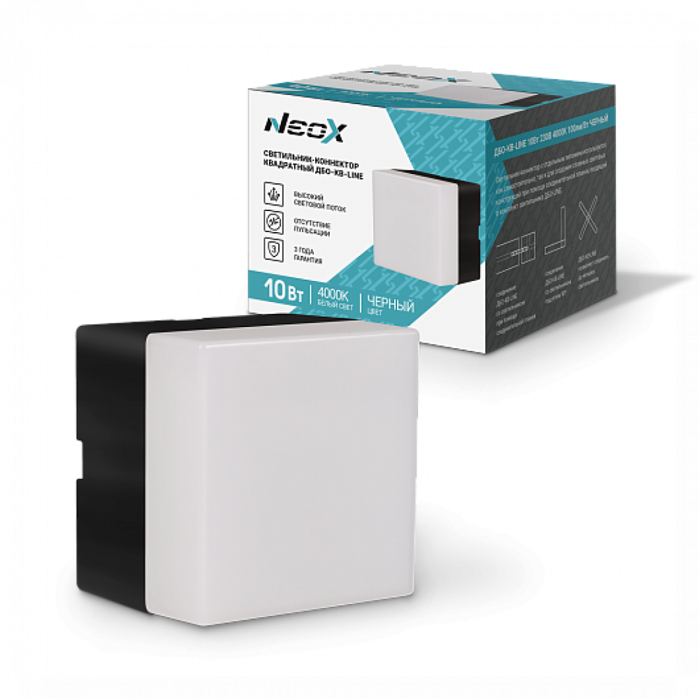 Описание Светильник-коннектор квадратный ДБО-КВ-LINE 10Вт 230В 4000К черный 4690612039701