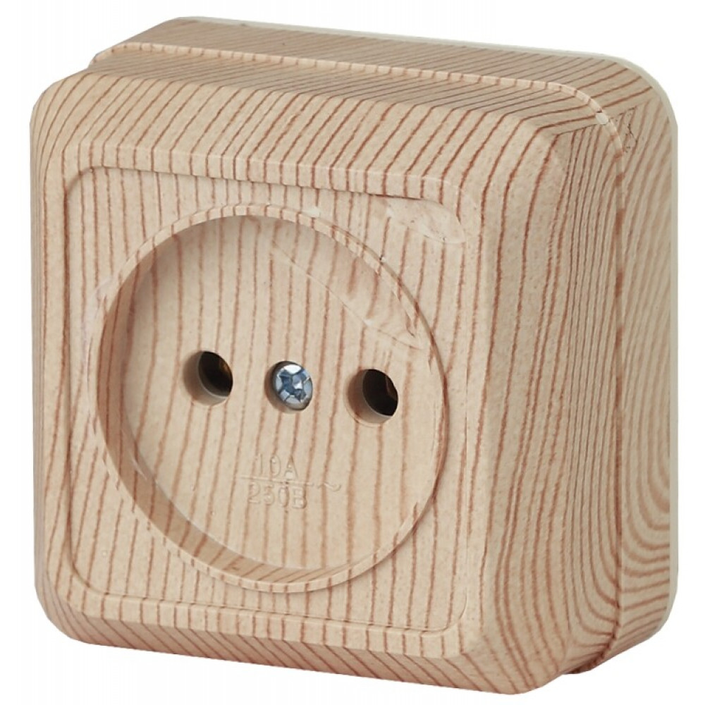 Розетка Quadro 2-201-11 без заземления 2P, 16А-250В, IP20, ОУ, сосна Б0053781, Розетка открытого монтажа
