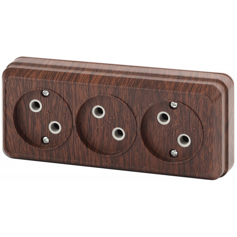 Розетка Quadro 2-205-10 без заземления трехместная 3х2P, 16А-250В, IP20, ОУ, венге Б0053815, Розетка открытого монтажа