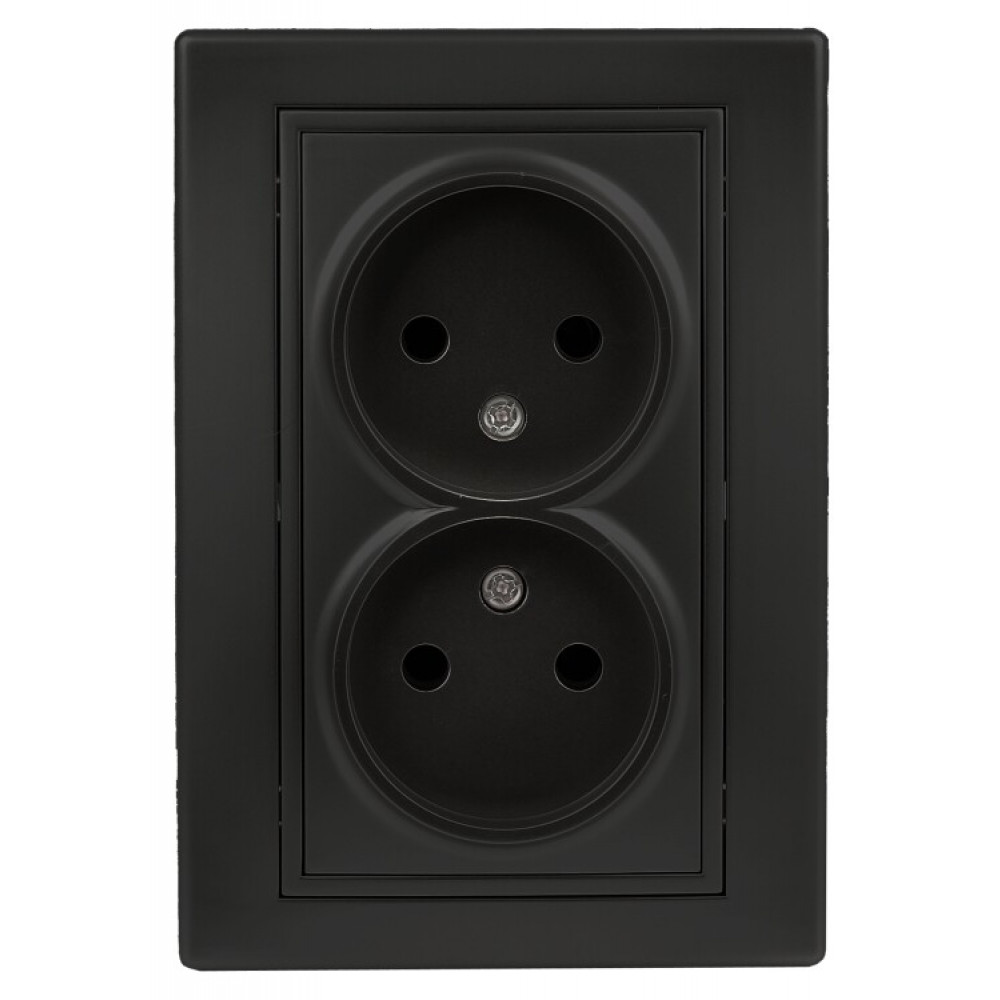 Розетка Plano 1-204-05 без заземления двойная 2х2P, 16А-250В, IP20, СУ, антрацит Б0053911, Розетка скрытого монтажа
