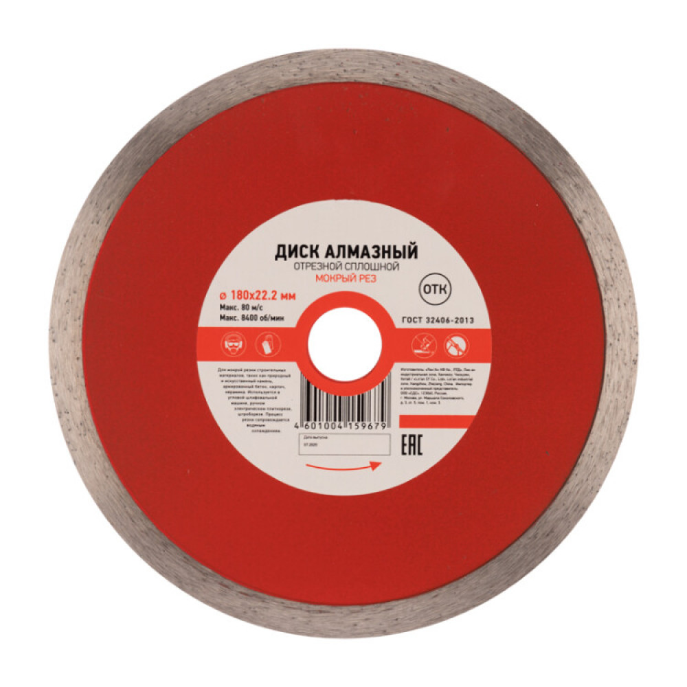 Доставка Диск алмазный отрезной сплошной 180x25.4/22.2x1.8x10 мм KRANZ KR-90-0113