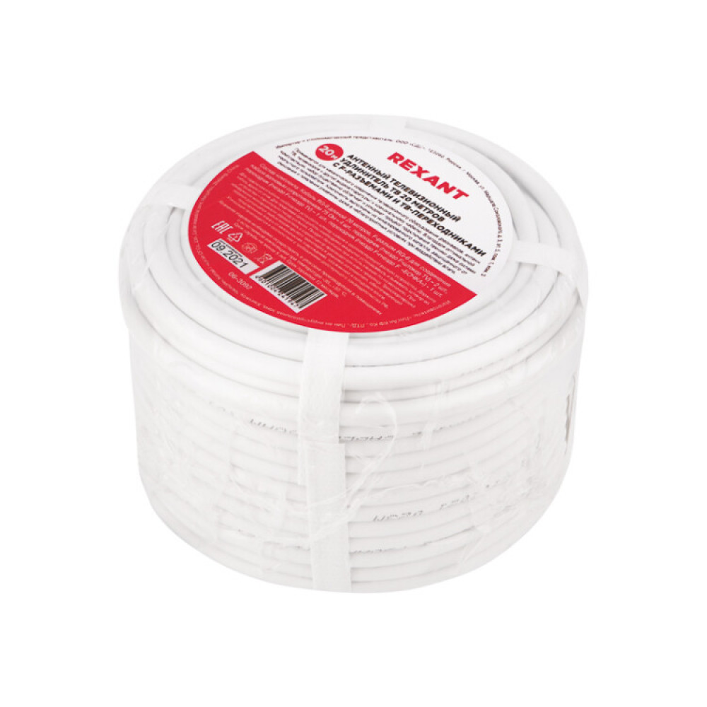 Набор с антенным телевизионным удлинителем для ТВ длиной 20м с F-разъемами и ТВ-переходниками 06-3092, Кабель и провод коаксиальный