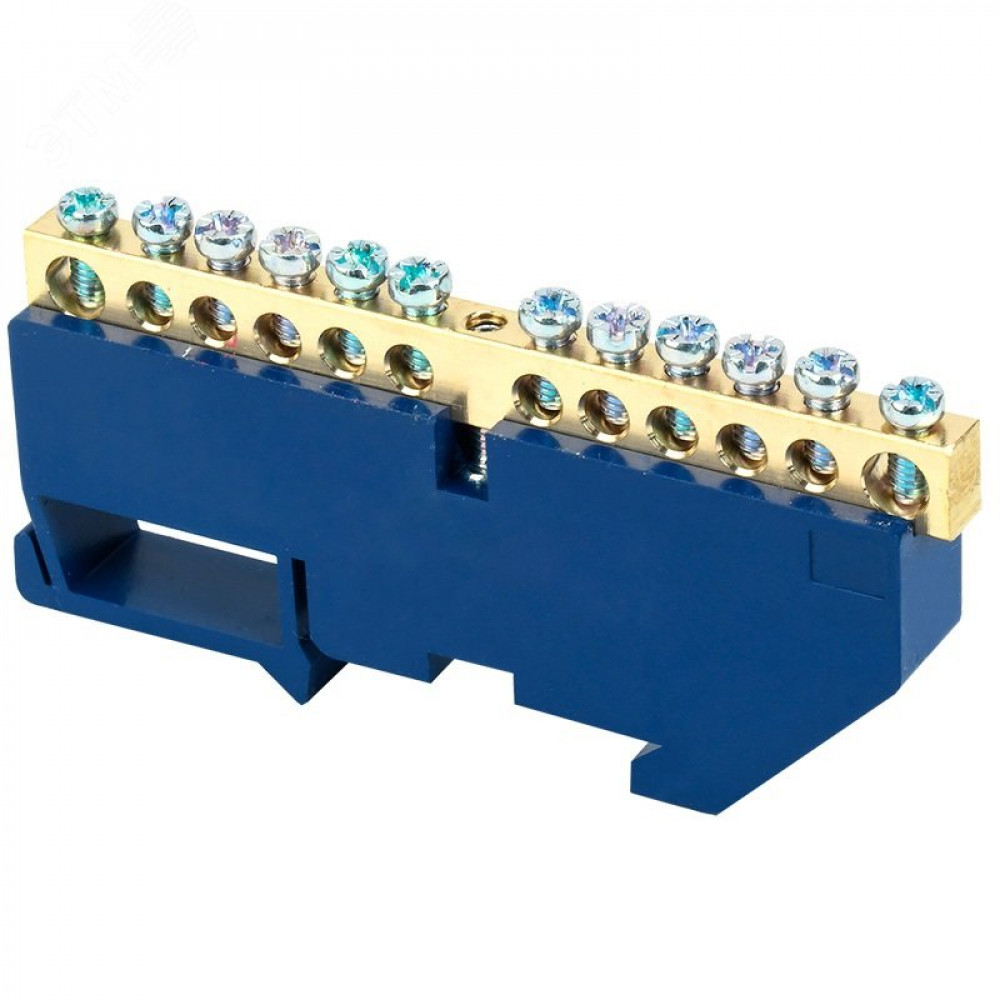 Шина «N» нулевая с синим изолятором на DIN-рейку 6x9 мм стойка бол. 12 групп 11-2342, Блок клеммный и нулевая шина