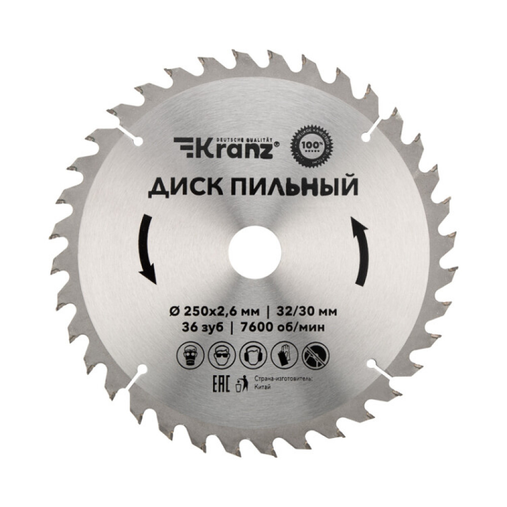 Описание Диск пильный 250 мм х 36 зуб х 32/30 мм KRANZ KR-92-0127