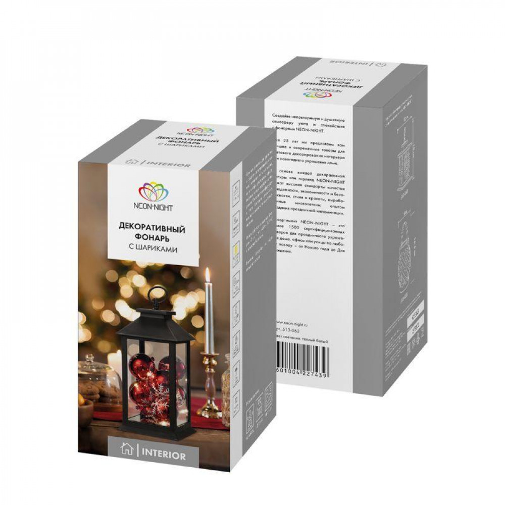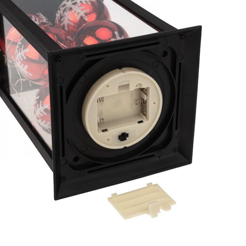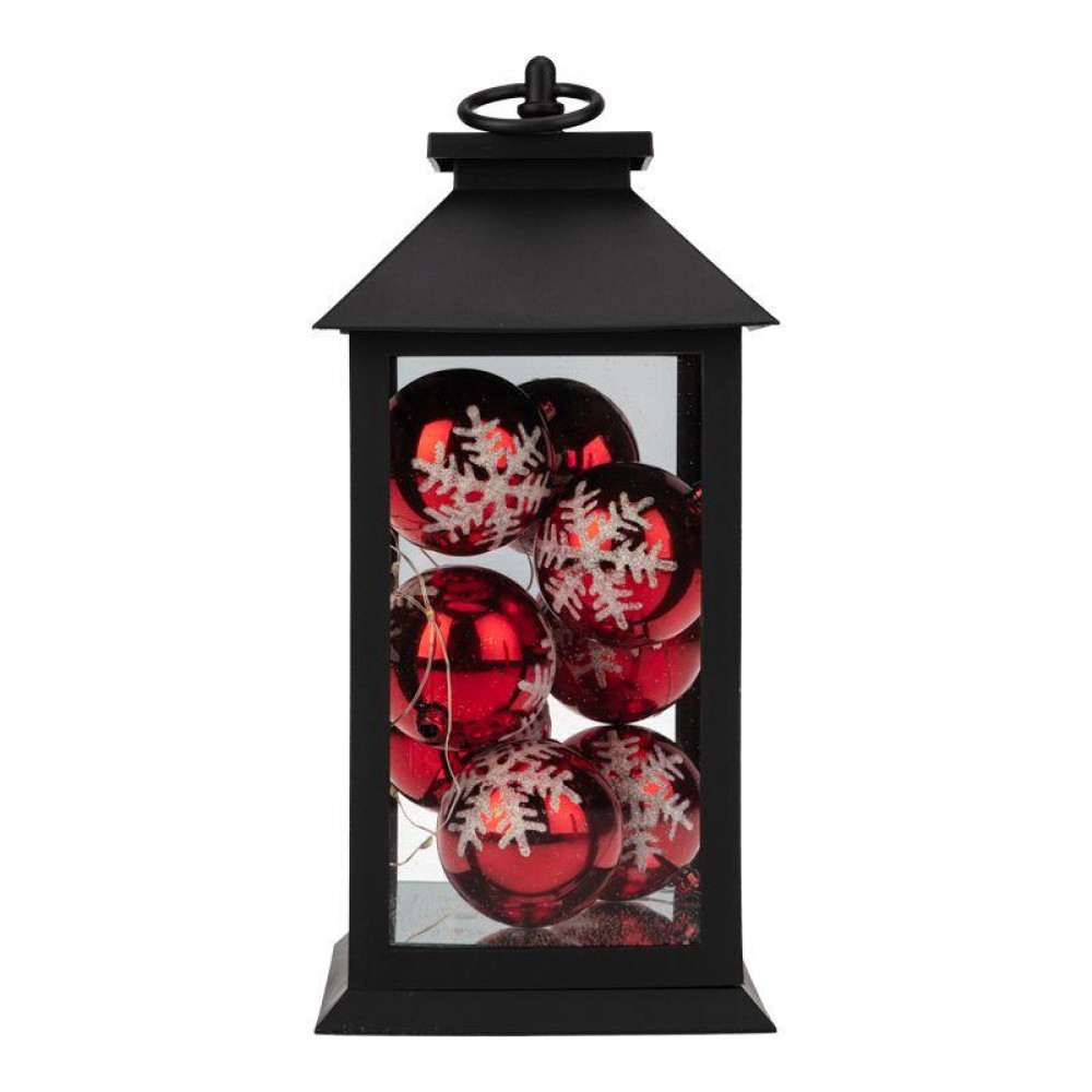 Описание Декоративный фонарь с шариками, черный корпус, размер 14х14х27 см, цвет теплый белый 513-063