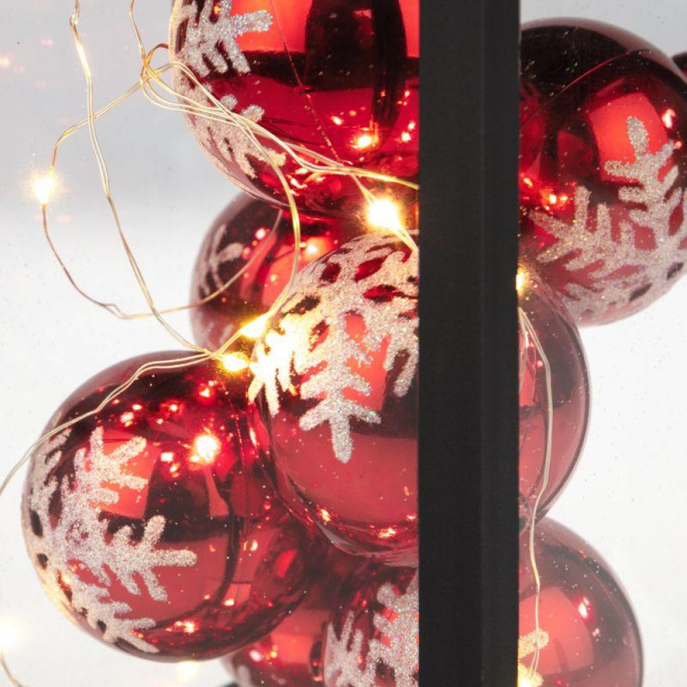 Декоративный фонарь с шариками, черный корпус, размер 14х14х27 см, цвет теплый белый 513-063