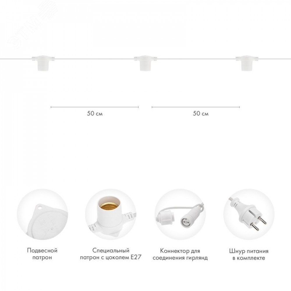 Belt-Light 2 жилы шаг 15 см патроны e27 влагостойкая IP65 белый провод 331-251 →