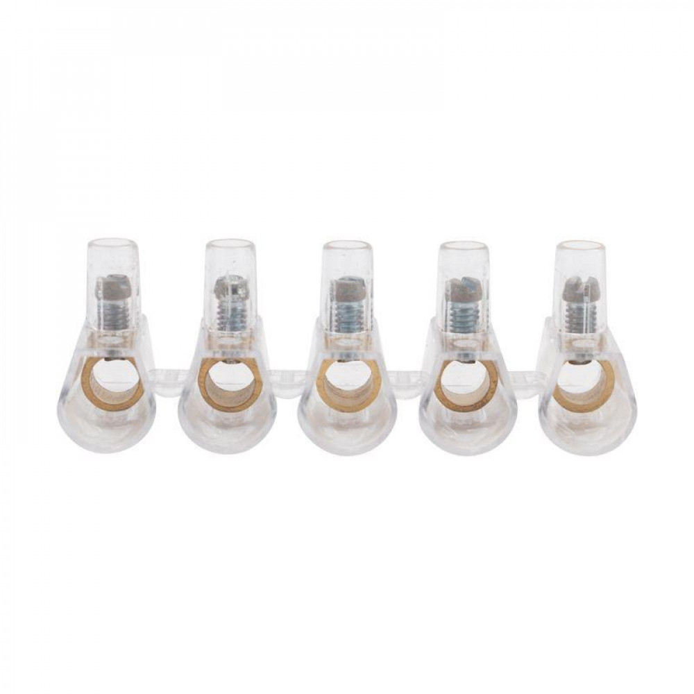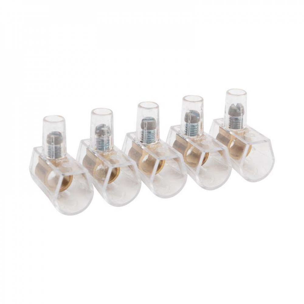 Концевые винтовые изолированные зажимы REXANT предназначены для электрического и механического соединения медных или алюминиевых проводников сечением от 2,5 до 6 мм.кв в электрической цепи напряжением до 450 В. В каждом зажиме можно зафиксировать по 2 проводника номинального сечения. Применяются для разводки силовых цепей в распределительных коробках и кабельных каналах. Материал контакта - латунь. Материал изолятора - поликарбонат. Материал винтов - оцинкованная сталь.