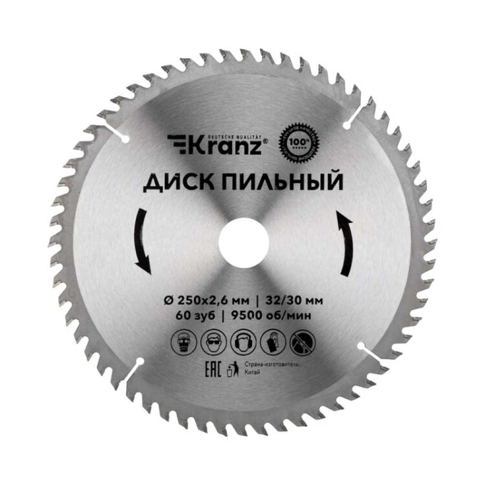 Описание Диск пильный 250 мм х 60 зуб х 32/30 мм KRANZ KR-92-0129