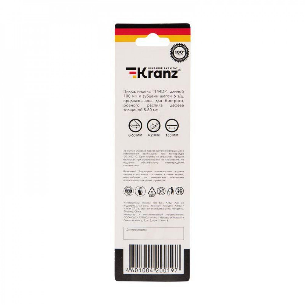 Описание Пилка для электролобзика по дереву T144DP 100 мм 6 зубьев на дюйм 8-60 мм (2 шт./уп.) KR-92-0317