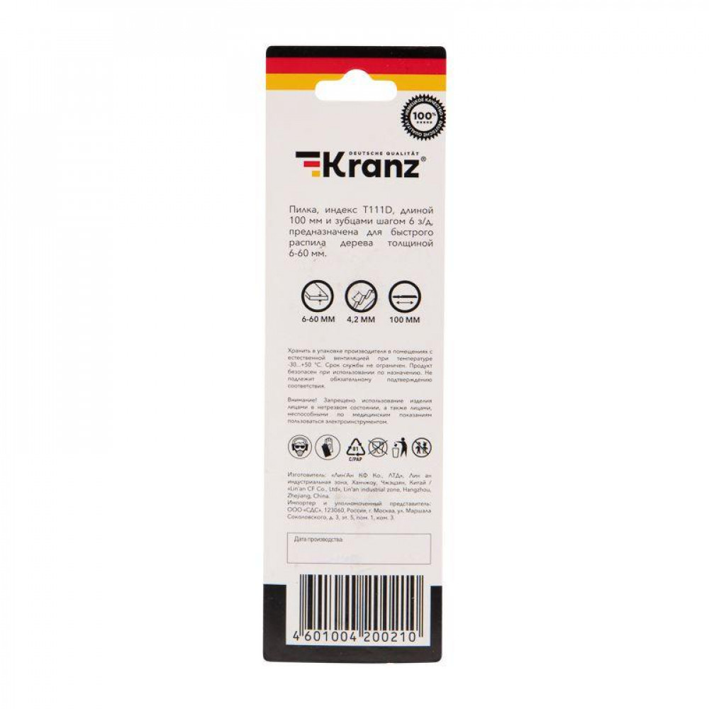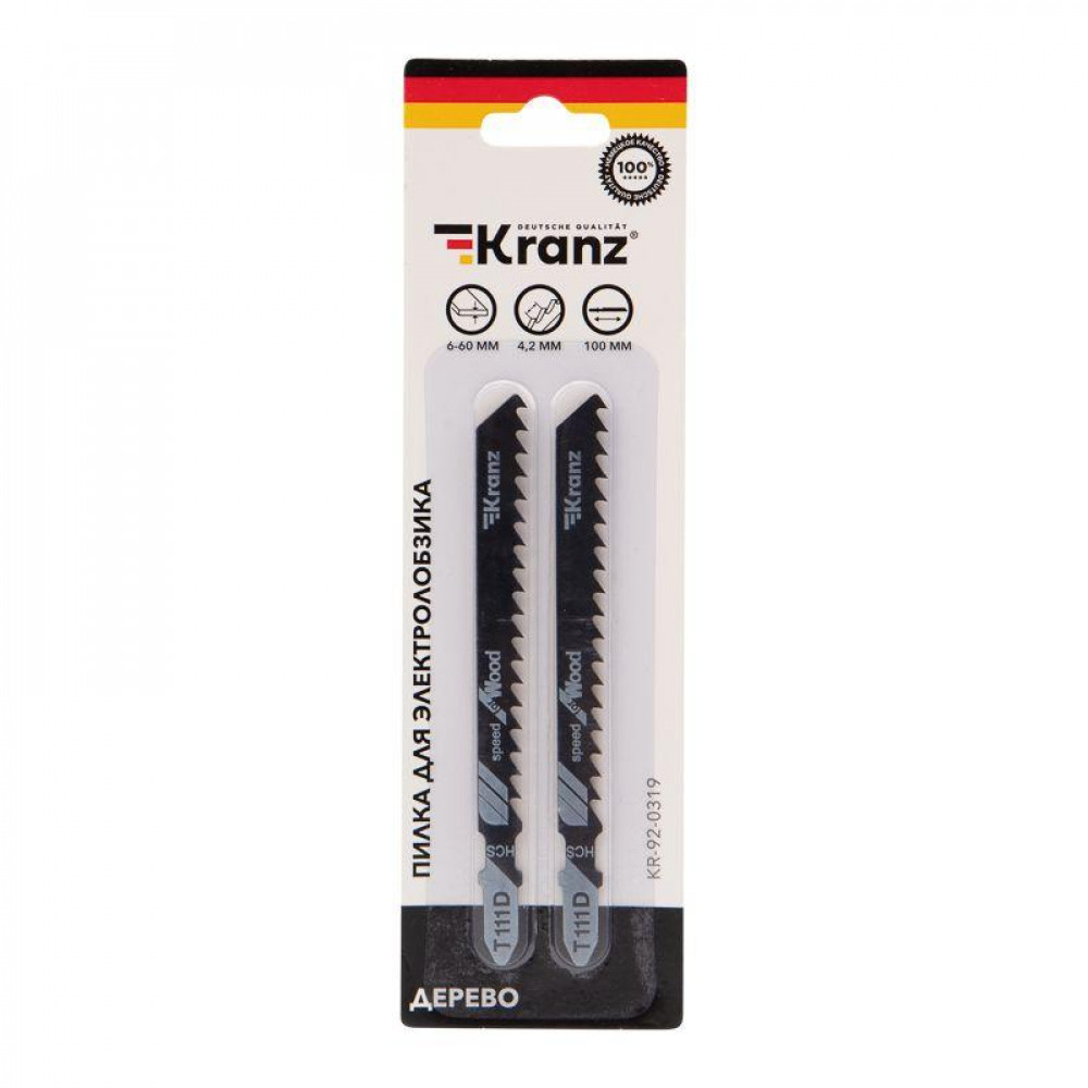 Описание Пилка для электролобзика по дереву T111D 100 мм 6 зубьев на дюйм 6-60 мм (2 шт./уп.) KR-92-0319