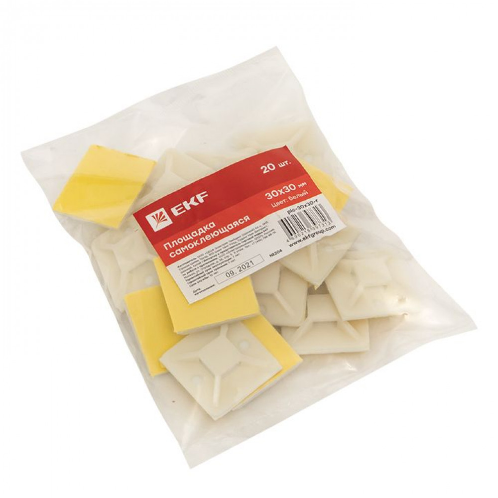 Площадка самоклеящаяся (30х30мм.) белая (20шт.) PROxima plc-30x30-r, Монтажная и крепежная лента, скоба