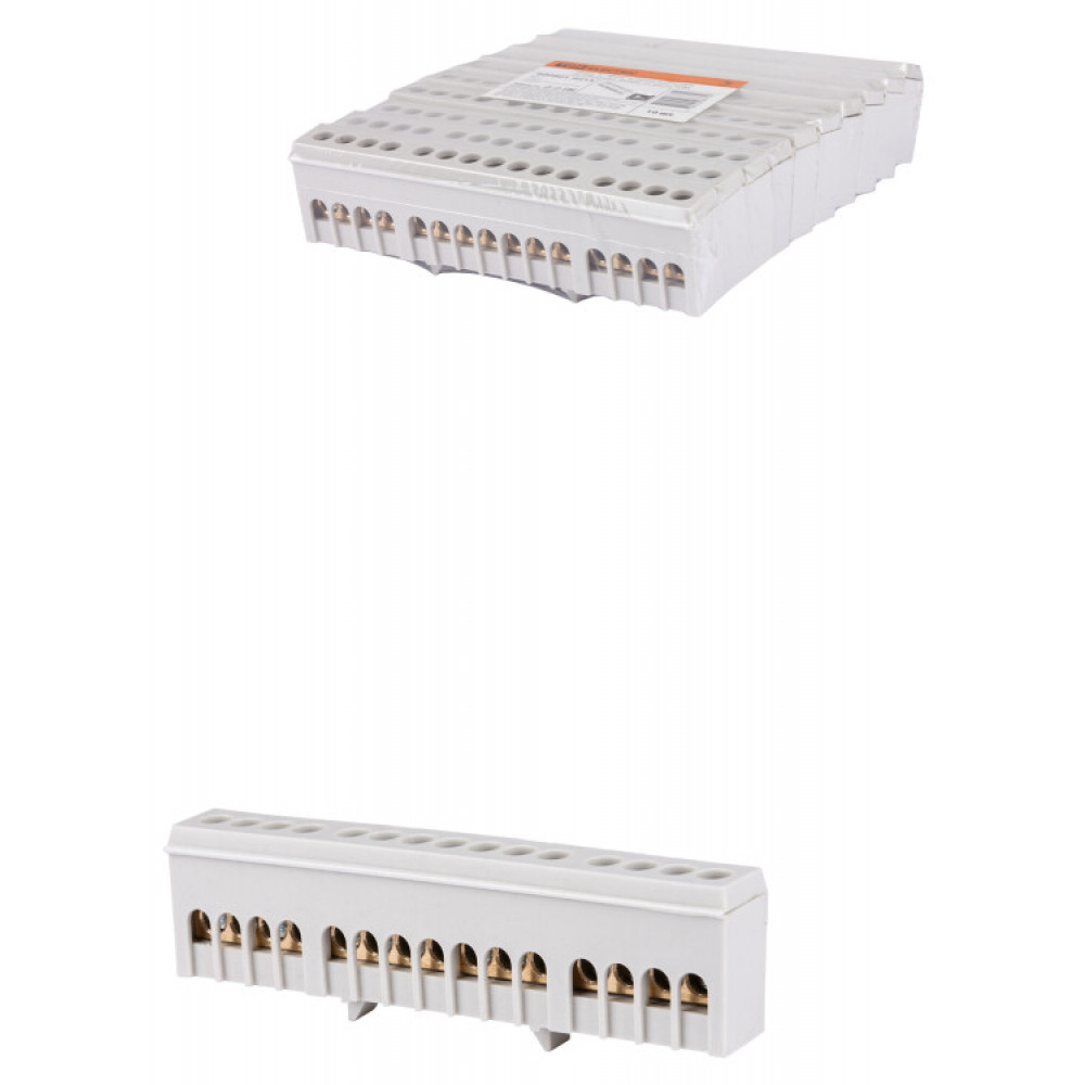 Шина "L" "фаза" в сером изоляторе на DIN-рейку 6x9мм 15 групп SQ0801-0213, Блок клеммный и нулевая шина