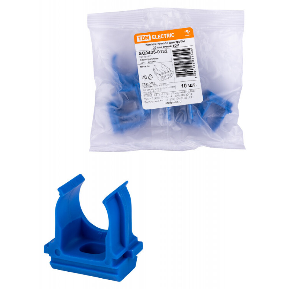 Крепеж-клипса для трубы ПНД 20 мм (10 шт.) синяя SQ0405-0132, Труба и короб для прокладки кабеля