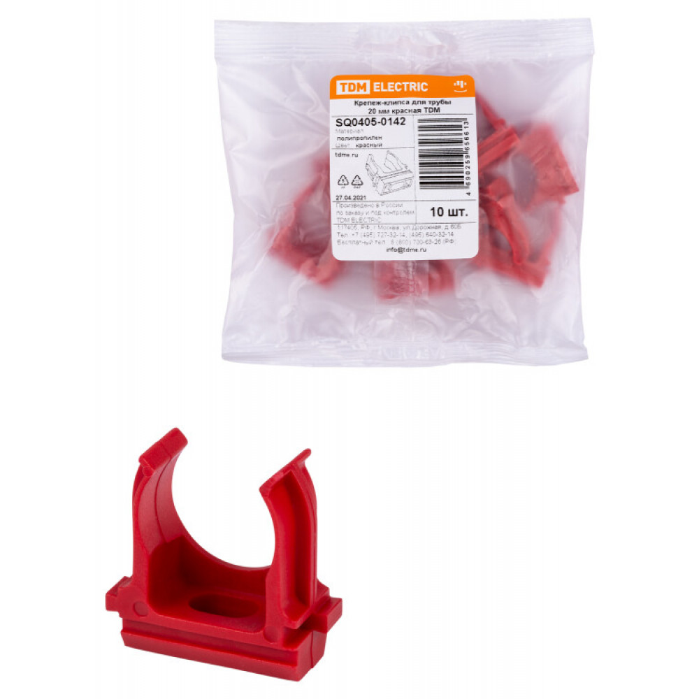 Крепеж-клипса для трубы ПНД 20 мм (10 шт.) красная SQ0405-0142, Труба и короб для прокладки кабеля