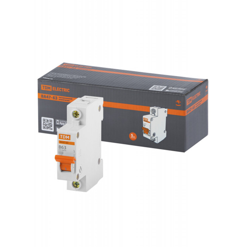 Автоматический выключатель ВА47-63 1Р 63А 4,5кА х-ка B SQ0218-0045, Выключатель автоматический модульный