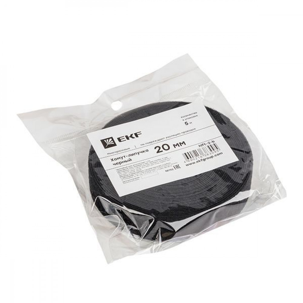 Хомут-липучка 20 мм (5м ролл) черный PROxima hlft-2-b, Хомут и стяжка кабельная