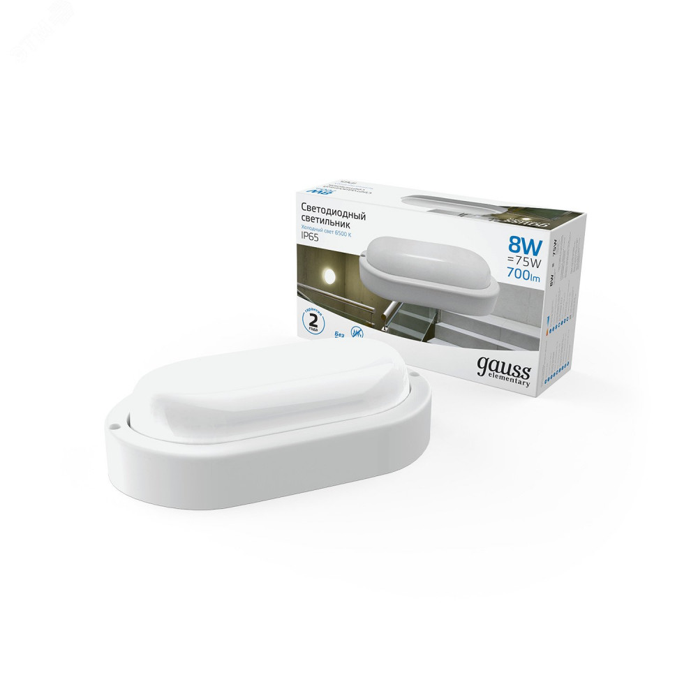 Описание Светильник ЖКХ Elementary овал 8W 700lm 6500K 160-260V IP65 160*90*46мм белый LED 1/40 161411308