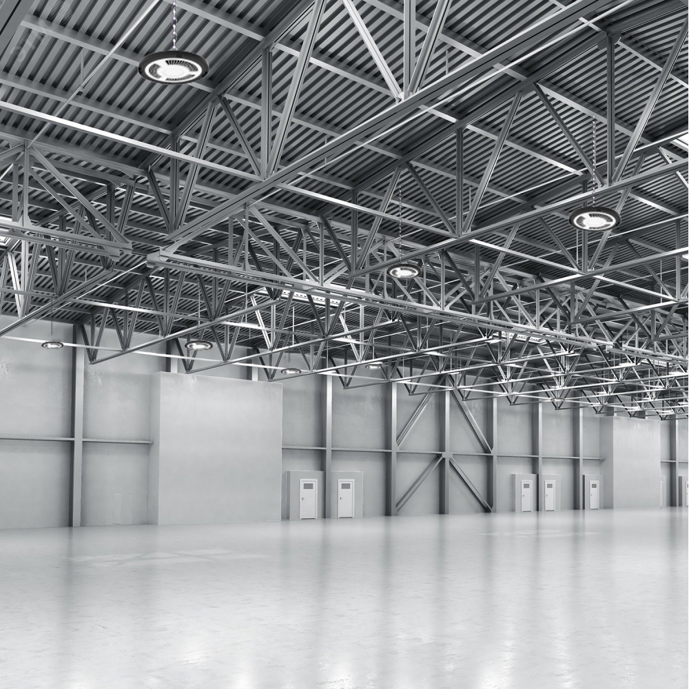 Светодиодные светильники серии UFO с нейтральным белым цветом свечения 5000K идеально подойдут для освещения помещений с высокими потолками, таких как: производственные цеха, склады, ангары и выставочные павильоны. Можно не беспокоиться об освещении помещений с высоким уровнем пыли и влаги, т.к. данные светильники имеют степень защиты IP65 и рабочий диапазон температуры окружающей среды от -30 до +45 градусов. Уникальное отличие данной модели – монтажная скоба, которая идет в комплекте со светильником. Благодаря этому у вас появляется возможность крепления светильника не только на трос, но и на стену или потолок. Отсутствие пульсации, высокая светоотдача 120Лм/Вт и удобство монтажа делают светильники серии UFO универсальным помощником для освещения промышленных объектов.