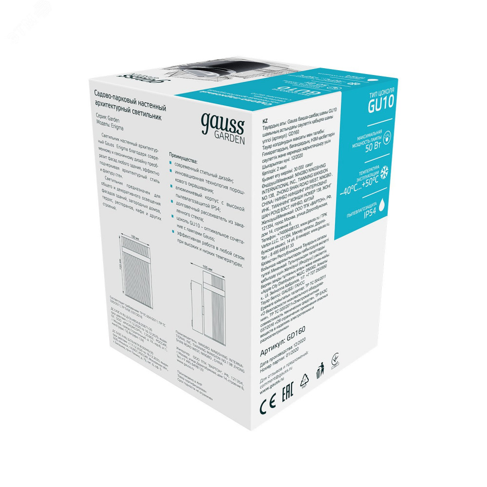 Доставка Светильник садово-парковый Enigma настенный архитектурный, GU10, 100*105*155mm, 170-240V / 50Hz, 1xMax.50W, IP54, 1/18 GD160