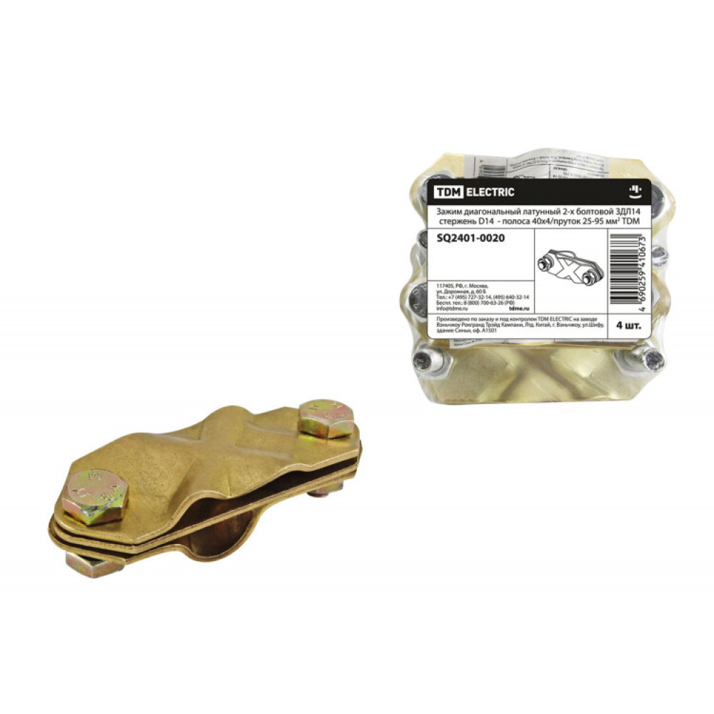Доставка Зажим диагональный латунный 2-х болтовой ЗДЛ14 стержень D14 - полоса 40х4/пруток 25-95 мм2 SQ2401-0020