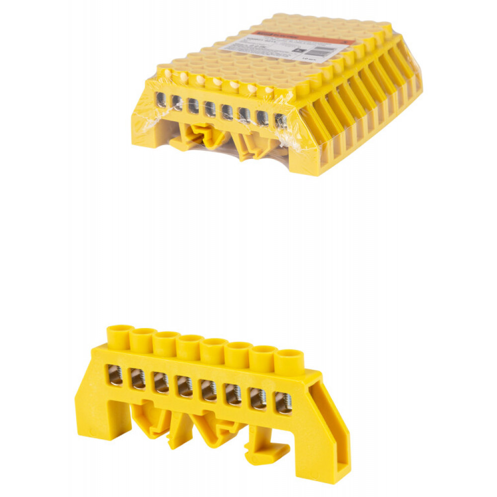 Шина "PE" "земля" в желтом изоляторе на DIN-рейку 8x12мм 8 групп SQ0801-0215, Блок клеммный и нулевая шина