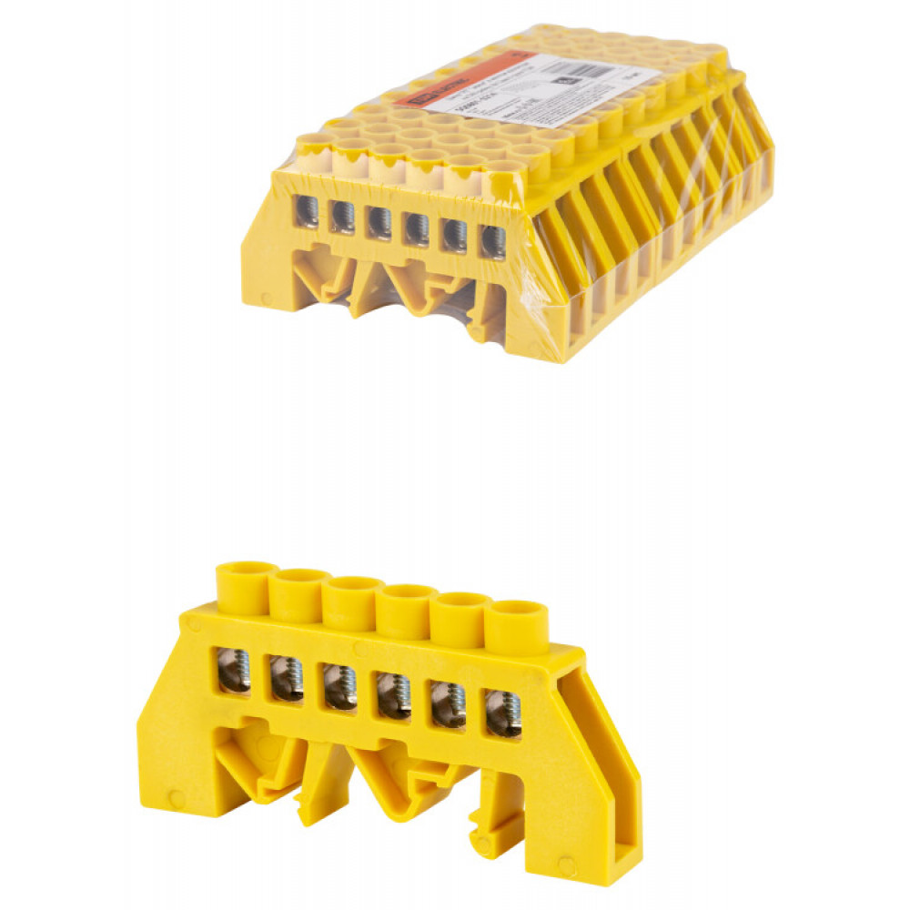 Шина "PE" "земля" в желтом изоляторе на DIN-рейку 8x12мм 6 групп SQ0801-0214, Блок клеммный и нулевая шина