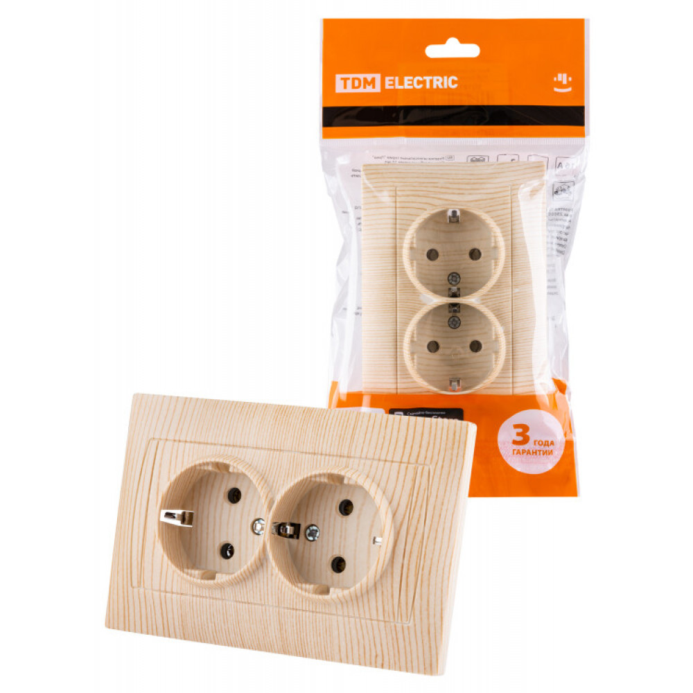 Доставка Розетка двойная 2П+З 16А 250В сосна "Лама" SQ1815-0325