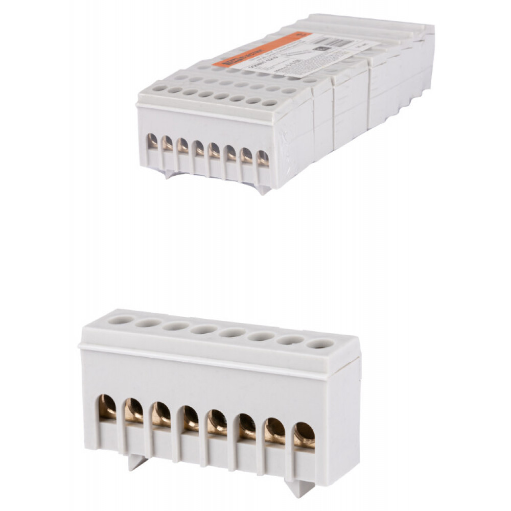 Шина "L" "фаза" в сером изоляторе на DIN-рейку 6x9мм 8 групп SQ0801-0210, Блок клеммный и нулевая шина