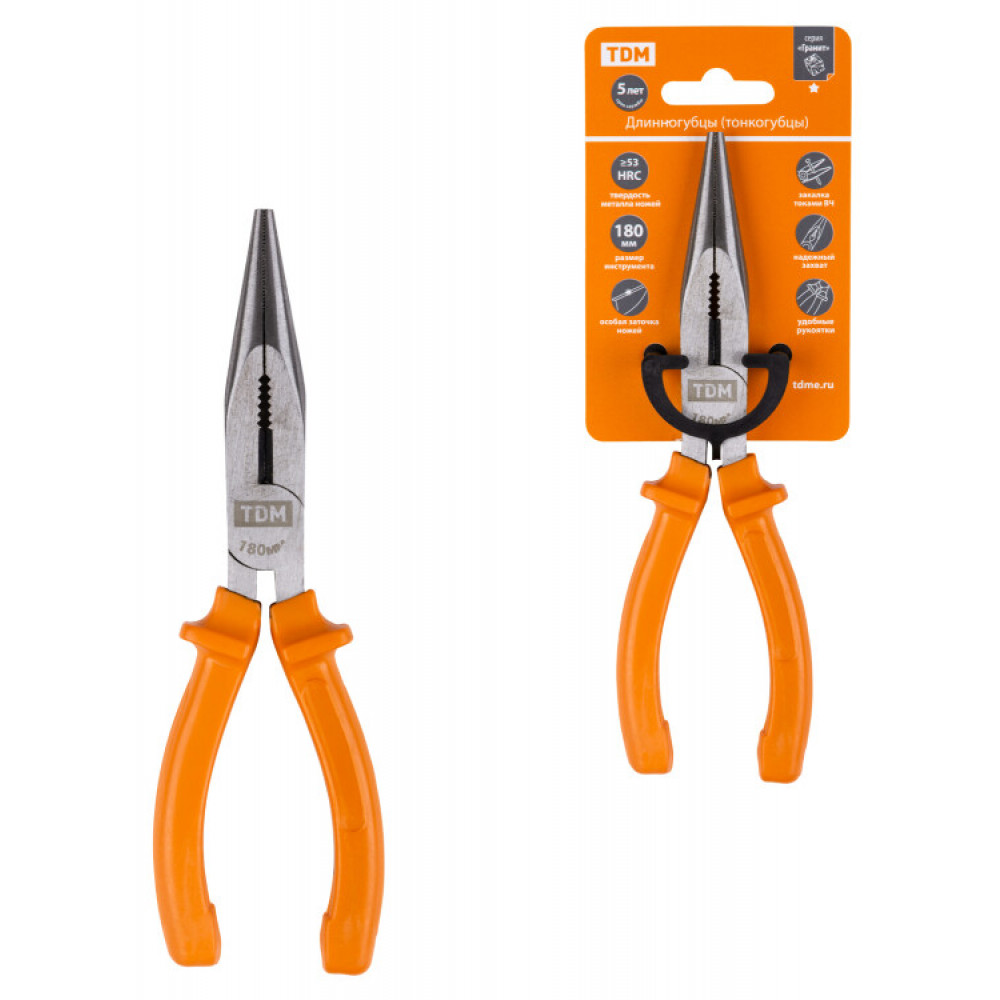 Длинногубцы (тонкогубцы), с пластиковыми рукоятками, углеродистая сталь, 180 мм, серия "Гранит" SQ1009-0202, Плоскогубцы