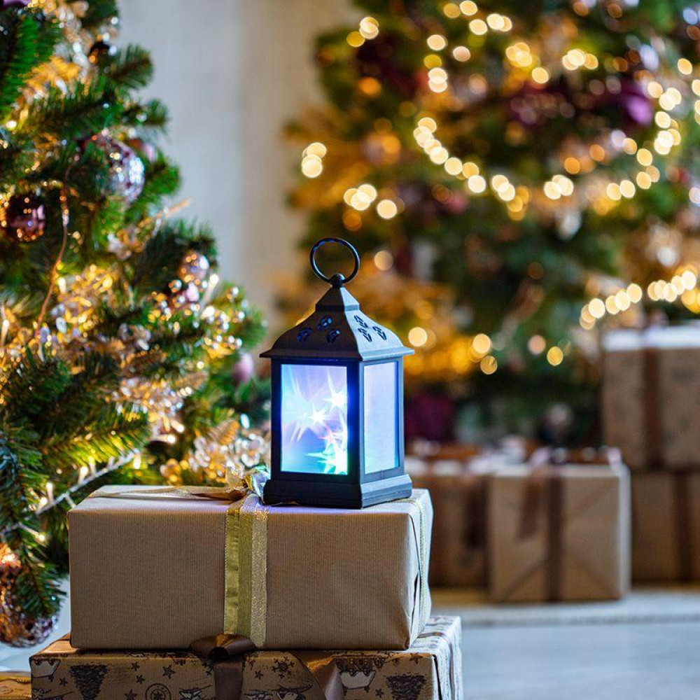 Доставка Декоративный фонарь 11х11х22,5 см, черный корпус, цвет свечения RGB с эффектом мерцания 513-064