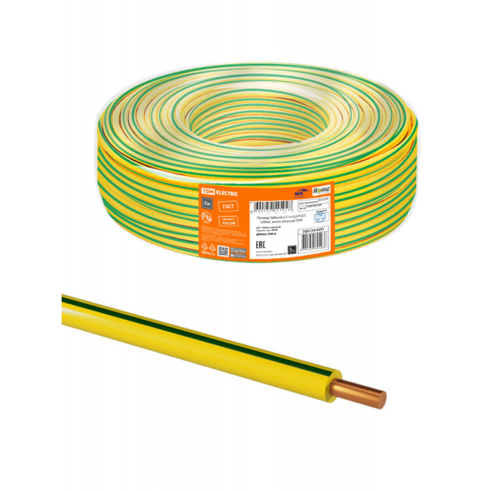 Описание Провод ПуВнг(А)-LS 1х10,0 ГОСТ (200м), желто-зеленый SQ0124-0297