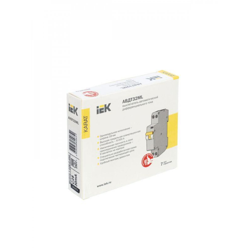 Описание Выключатель автоматический дифференциального тока С 25А 30мА АВДТ32МL KARAT MVD12-1-025-C-030