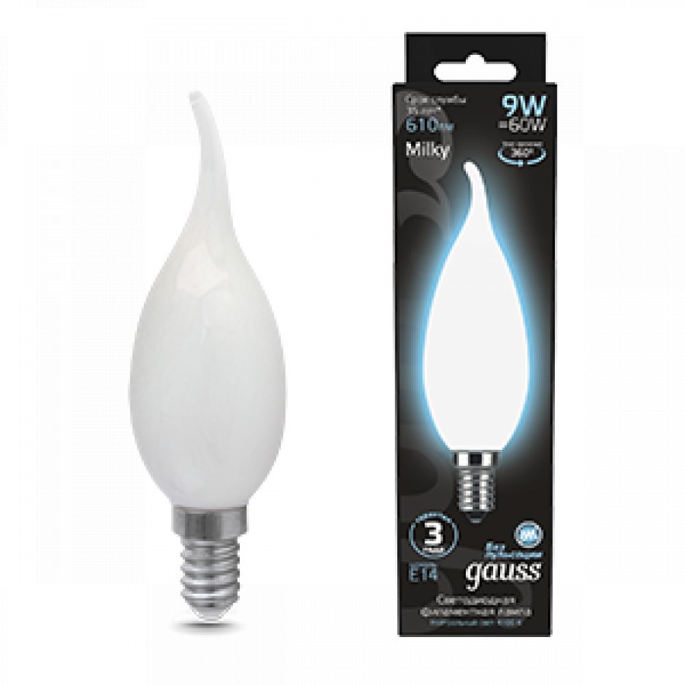 Лампа Filament Свеча на ветру 9W 610lm 4100К Е14 milky LED 1/10/50 104201209, Лампа светодиодная