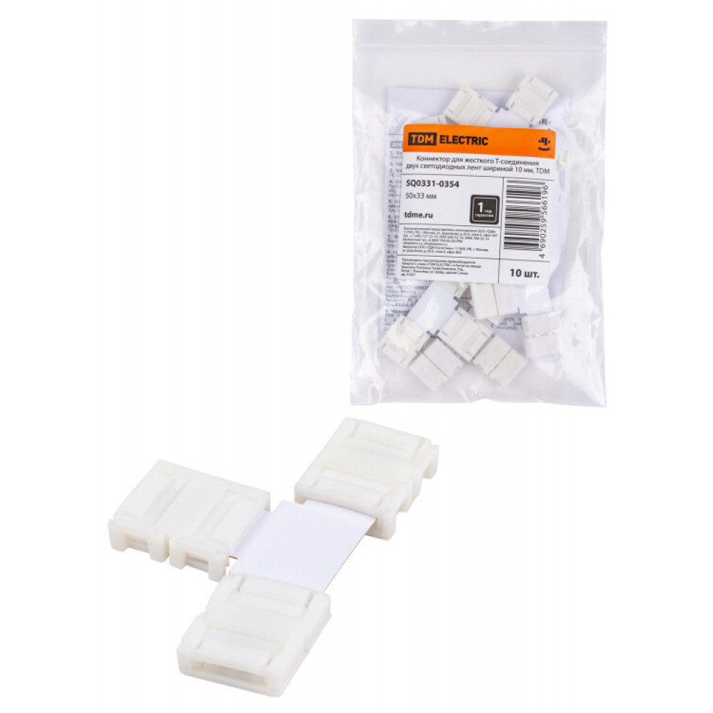 Описание Коннектор для жесткого T-соединения двух светодиодных лент шириной 10 мм, SQ0331-0354