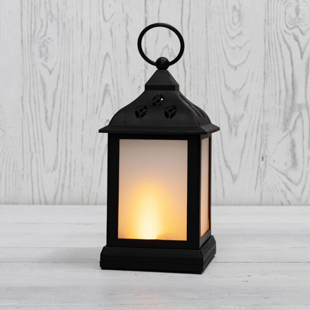 Декоративный фонарь 11х11х22,5 см, черный корпус, теплый белый цвет свечения с эффектом пламени свечи 513-066