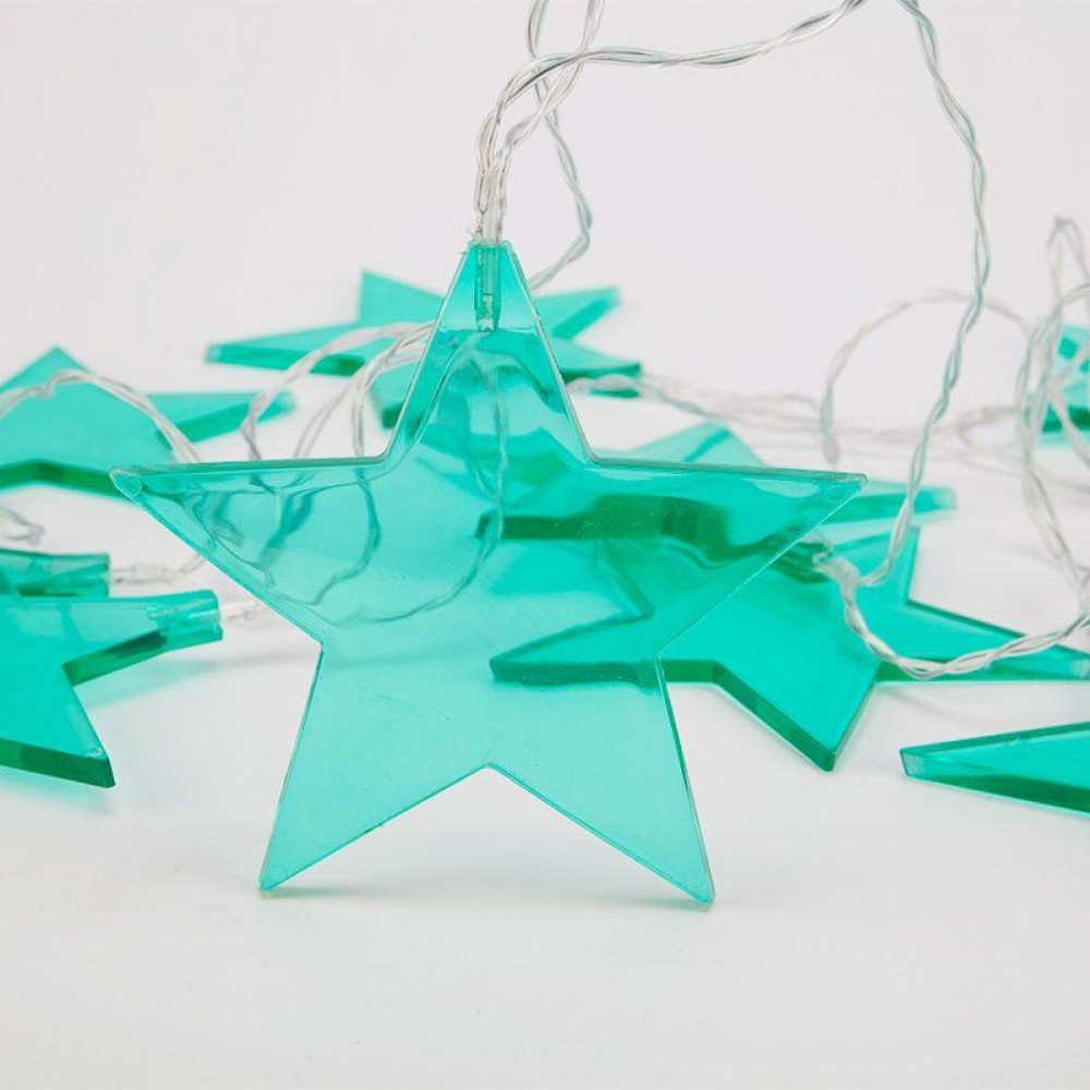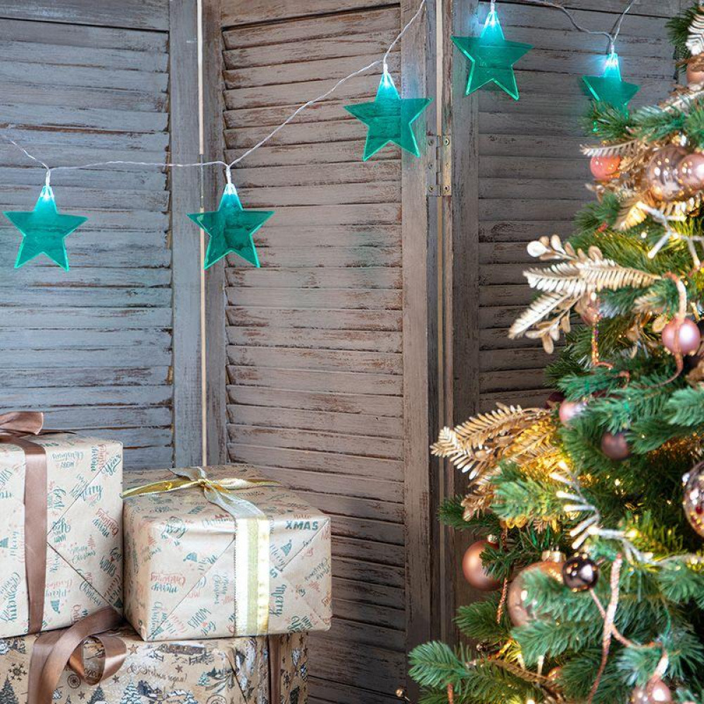 Гирлянда светодиодная Звездопад бирюзовая 10 LED, 2,25 м, прозрачныйПВХ, белый цвет свечения, 2 х АА (батарейки не в комплекте) 304-004, Светильник декоративный