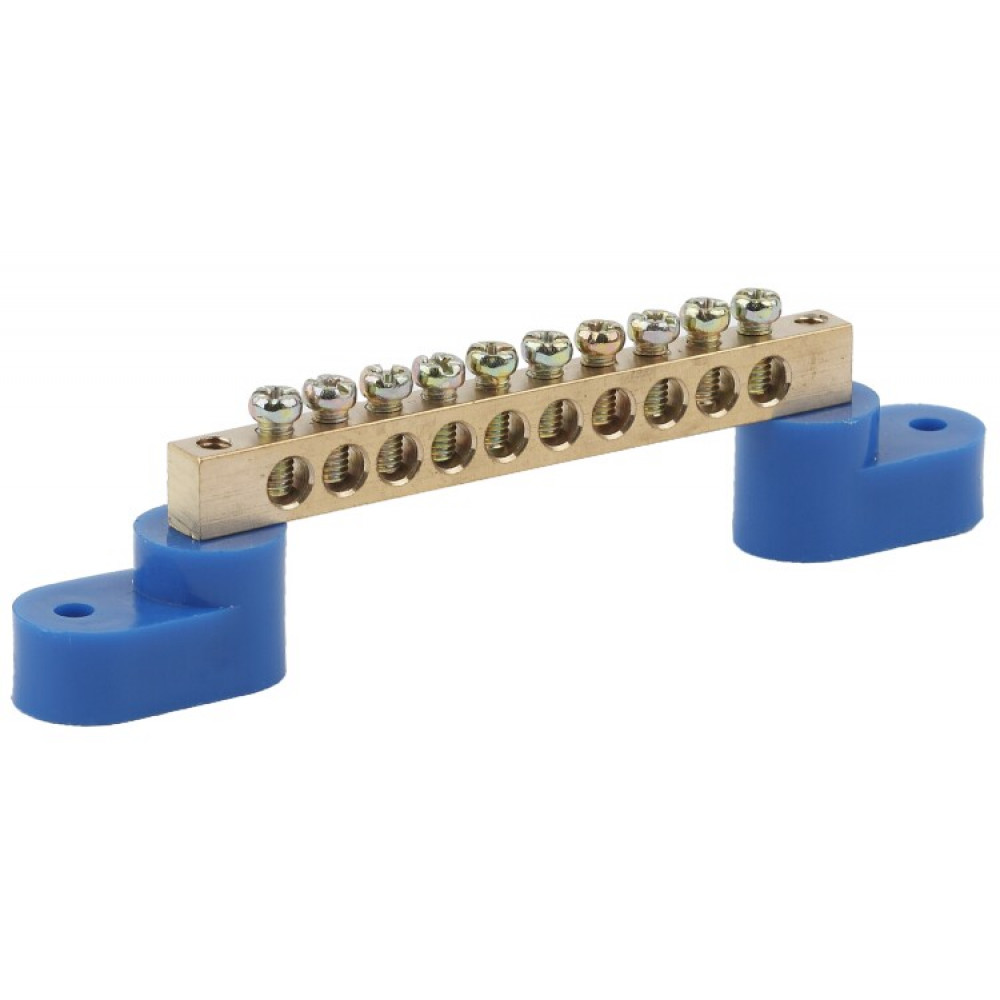 Шина NO-222-57 N ноль на двух угловых изоляторах ШНИ-6х9-10-У2-синий Б0033437, Блок клеммный и нулевая шина