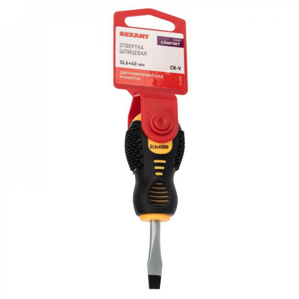 Отвертка шлицевая SL6х40мм, двухкомпонентная рукоятка 12-4725, Отвертка