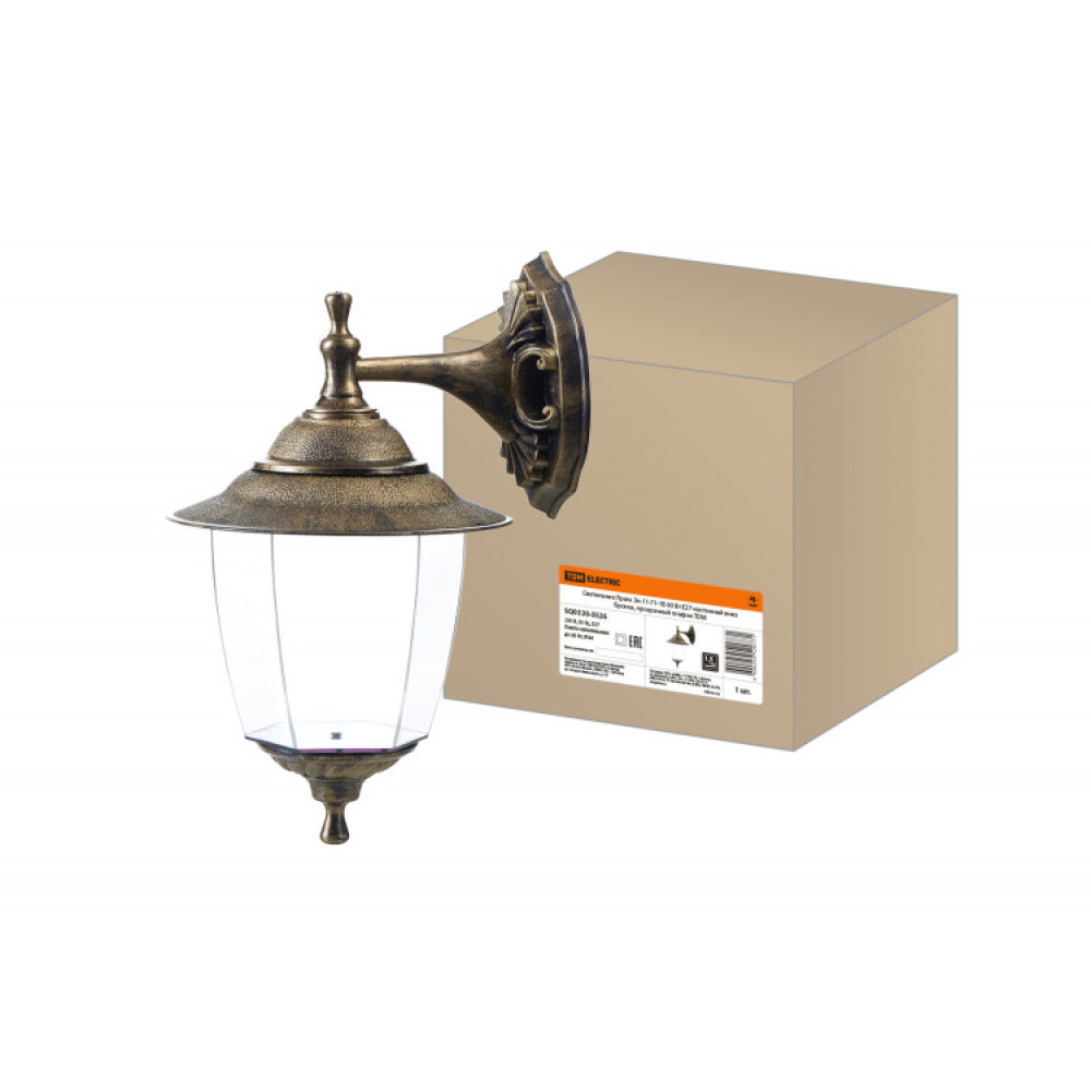 Описание Светильник Прага Эл-11-71-1Б 60 Вт Е27 настенный вниз бронза, прозрачный плафон SQ0330-0526