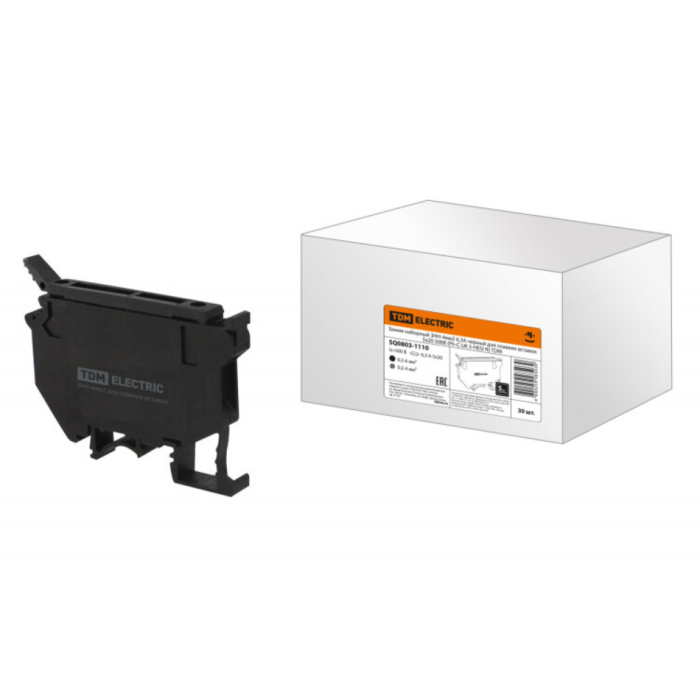 Описание Зажим наборный ЗНН-4мм2 6,3А черный для плавких вставок 5х20 500В (Ph-C UK 5-HESI N) SQ0803-1110