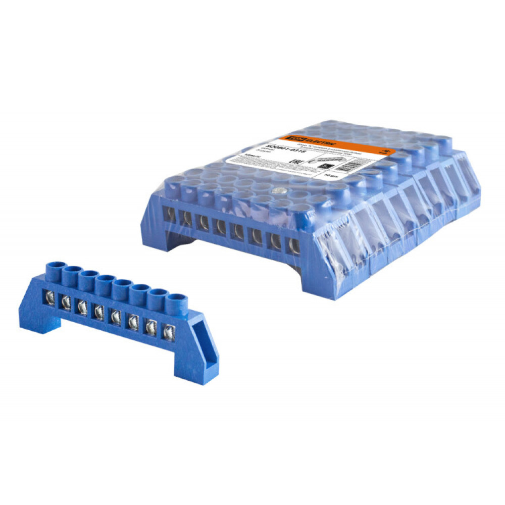 Шина "N" нулевая в изоляторе 6х9мм 8 групп никелированная SQ0801-0318, Блок клеммный и нулевая шина