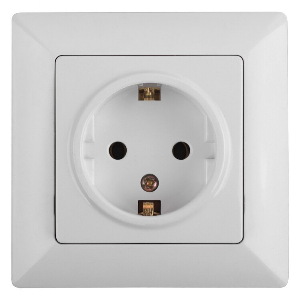 4-206-01 Розетка 2P+E Schuko со шторками, 16А-250В, СУ, Solo, белый (10/200/2400)( Б0043340, Розетка скрытого монтажа