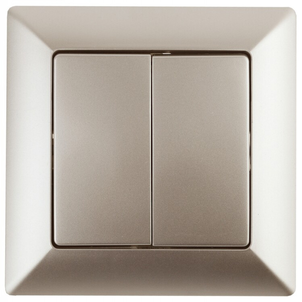 4-104-04 Выключатель двойной, 10А-250В, СУ, Solo, шампань (10/200/2400) Б0043287, Выключатель и переключатель скрытого монтажа