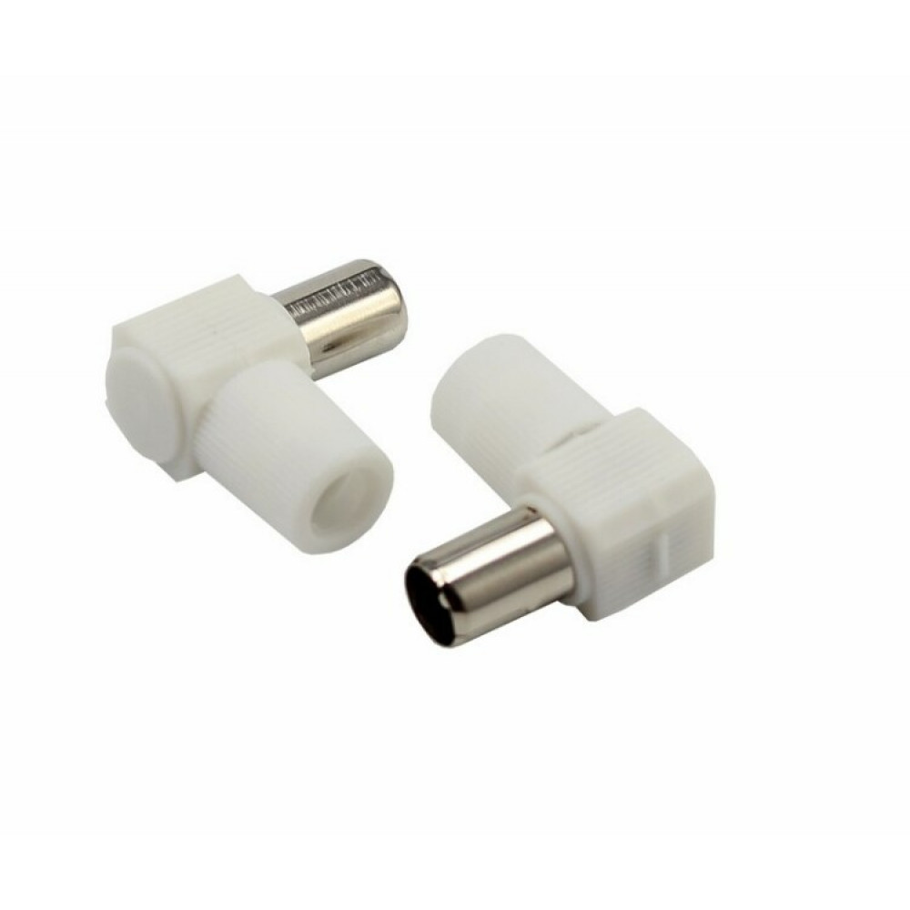 TV-разъем штекер без пайки белый угловой 05-2061, Разъем ТВ антенный, переходник