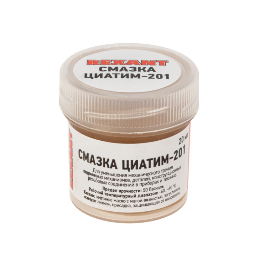 Описание Смазка антифрикционная REXANT, ЦИАТИМ-201, 20 мл, банка 09-3957